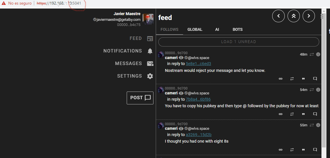 Adicionalmente, se puede usar también un “relay” propio, que ayuda a la expansión de la red y seguramente nos facilita una mayor privacidad e independencia, si bien debo reconocer que todavía no he conseguido interactuar con el relay.